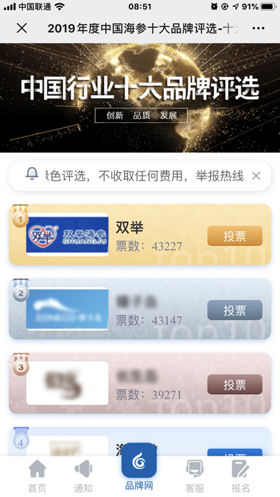 據(jù)杜建紅介紹,在投票直選活動(dòng)開(kāi)始后十多天,有客戶(hù)訂購(gòu)海參時(shí)無(wú)意中說(shuō)出,他們方才知道雙舉海參已經(jīng)“被參加”且一直占據(jù)“中國(guó)行業(yè)十大品牌評(píng)選”榜首位置。“事先并沒(méi)有任何部門(mén)告知我們這件事,估計(jì)是因?yàn)槠放朴绊懥^大而通過(guò)網(wǎng)絡(luò)自動(dòng)收取的,隨即得到雙舉粉絲們的鼎力支持和積極參與帶來(lái)的結(jié)果。”她說(shuō),通過(guò)這件事,讓雙舉海參全體員工都深感振奮,畢竟這至少說(shuō)明雙舉海參得到了全國(guó)各地廣大雙舉粉絲的認(rèn)可和肯定。