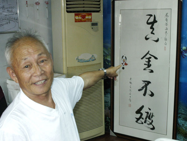 1大叔指著這幅字說到:“看到你們的產(chǎn)品和服務(wù),我敢說,雙舉海參是名副其實(shí)的‘真金不鍍’。”