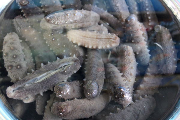 純淡干制作,不加鹽不加糖,原干原色的海參,所以顏色看上去不是均勻的黑色,但聞上去是很正的大海的鮮中帶腥的味道,真正帶著海參水的味道。顯著特點(diǎn)是刺短根粗,肉質(zhì)厚,發(fā)泡后出貨率相當(dāng)高。因?yàn)槭羌兊芍谱?,所以干海參的樣子看上去不太漂亮,不加糖,就像女孩子沒(méi)經(jīng)過(guò)化妝,純淡干海參蛋白質(zhì)含量可達(dá)50-60%,真正原干海參,但發(fā)泡出來(lái)效果非常好,這個(gè),“只有體驗(yàn)了才知道”